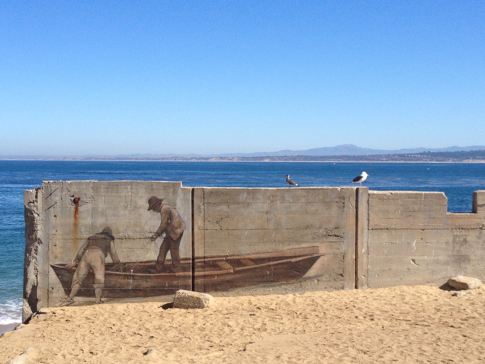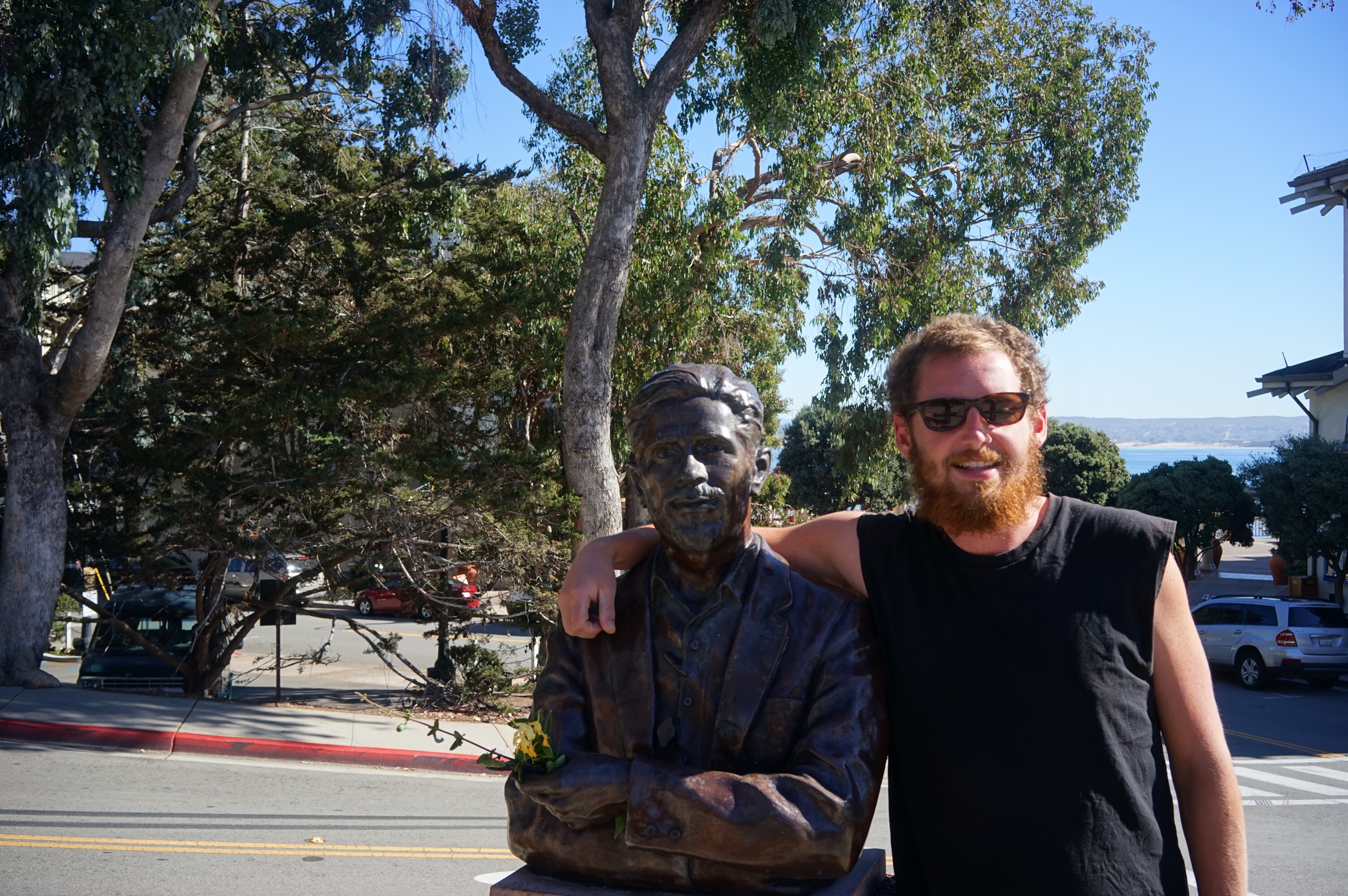 Exploring such an epic environment was an amazing way to reconnect with an old friend. We wound down across dusty central California again to the pinnacles national park, filled with bizarre rock formations, home to huge tarantula and then onto the coast where Santa Cruz was waiting. Looking for some kind of party I managed to find us some British bikers sharing our motel, we tried a trendy bar and then opted for the dive. Steinbeck country was up next, driving down the salinas valley, into Monterey and then Cannery row. No longer working areas, instead littered with facilities for the top echelons of society it was still exciting to have some kind of context to these books. I hugged a statue of Ed Rickets or ‘Doc’ , a personal hero from the book who’s character had made a big impression on me. Doc would tip his hats to the dogs he drove by and they would look up and smile at him.
