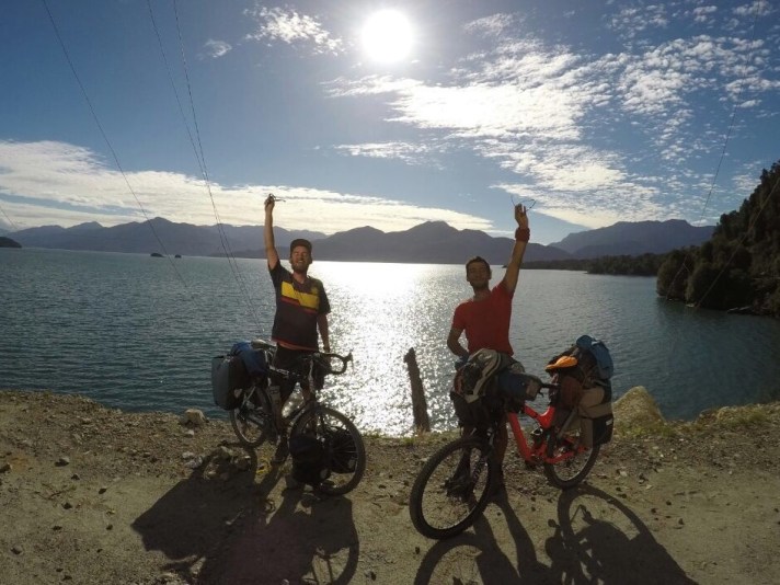 The road forked just short of Coyahique. Felipe took the dirt track and we raced the 75 kilometre distance, I had an all smooth paved road, which wound towards and away from the prevailing winds. He had 7 kilometres less, avoided a lung busting 7km climb but had to do it all on ripio. I flew into town just three hours later and immediately scouted wifi to be the first to send the arrival what’s app message. I took a quick swing around the plaza and then look to found a bed as the rain started to fall. An old university building offered me a spot to sleep on the floor as there were no beds left and I settled in by cooking up some steak and wine, satisfied under the consistent potter patter of rain on the tin roof. The rain persisted in the morning and I decided on a day off. I shopped and stocked up, watched a film and chatted with an older Californian Chris who had just walked all the way up from Ushuaia in three months, I was hoping to make it in three weeks. He carried his belongings in a baby buggy. His previous sailing trip had ended of the coast of Togo as his ageing boat sank, he lived in the church there for six months before heading to start walking his way up. He was thinking of swapping the buggy for a bike and I spent the best part of the day and breakfast persuading him it was the right thing to do. I hooked him up with all the people in the biking community that I knew would help him get going and left the next day with his plans to travel up to Santiago to get kitted up and start his next adventure on two motorless wheels.