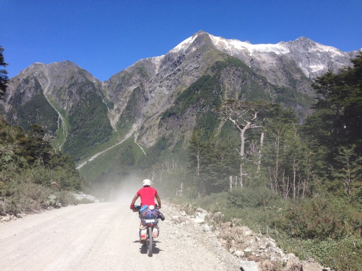 The scenery was completely unspoilt and different glaciers hung high above steep mountains feeding spectacular glacial rivers, they marked each descent into the next valley. The small towns were fascinating and I spoke to a few locals about their history and industry. It seemed most survived on sparse mines or on wood trade but there was little or no industrial feel. The distinct wooden houses seemed quaint and village like, not as you would expect from parts in such wild weather and remoteness. Though most bared the scars of a yearly winter battering. Me and Felipe developed a great Rhythm and I taught him English and he helped with my Spanish, we joked over our evening camp fires. I sped off on the Tarmac sections of the road and he overtook as the Tarmac turned to dirt again.